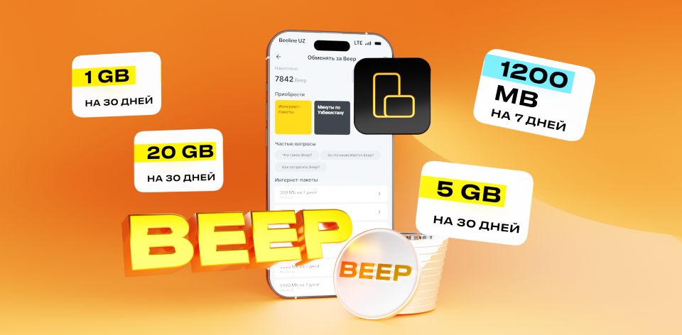 Earning Beep: — You earn 1 Beep for every 1,000 UZS spent on Beeline Uzbekistan services;