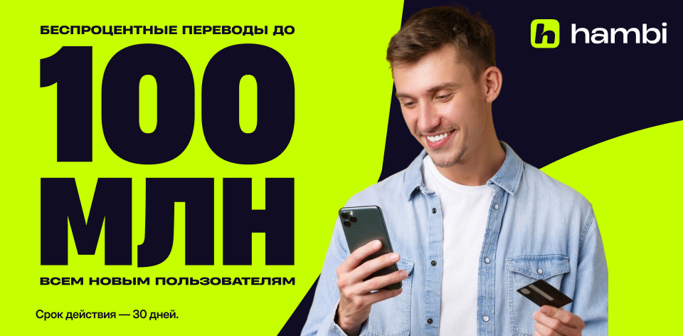 Теперь новым пользователям hambi доступны переводы без комиссии — просто и выгодно