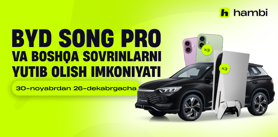 30-noyabrdan 26-dekabrgacha hambi super ilovalasida “Sovrinlar mavsumi” — katta yutuqli o‘yinning ikkinchi bosqichi o‘tkazilmoqda!