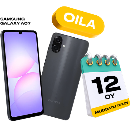 Samsung Galaxy A07 (2025) smartfonini qo‘shimcha to‘lovlarsiz va vositachilarsiz muddatli to‘lov evaziga qo‘lga kiriting.